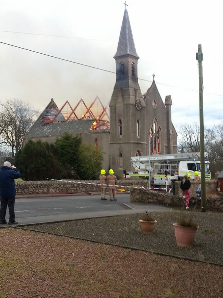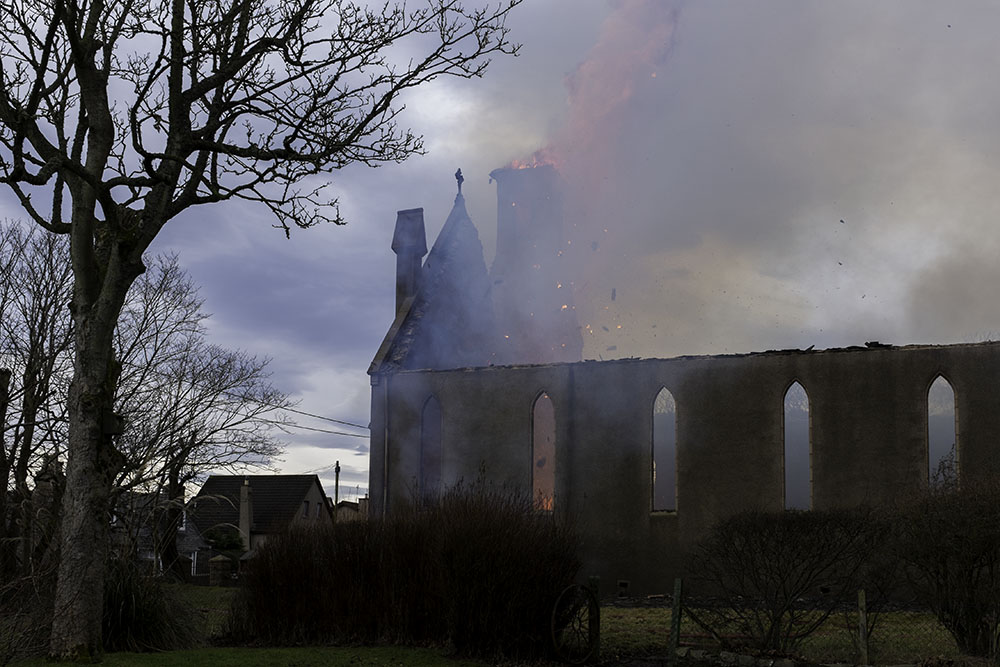 Fire totally destoryed the disused West Church in Hatton on 18 February 2015